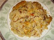 - then pour remaining chicken gravy on rice and sprinkle golden fried onions, and saffron soaked in milk, ghee, chopped pudina and coriander.